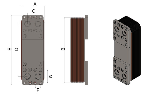 Plates and connections are manufactured from stainless steel to AISI 316, 1.4401, vacuum–brazed with copper / stainless. The special molding of the plates produces the turbulent flow necessary for effective heat transfer and provides the plate heat exchanger with a high level of mechanical strength. Nickel & Stainless brazed option available