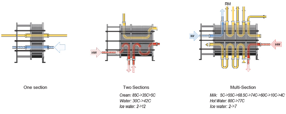 Sanitary range plate heat exchangers uses glue-free gaskets made from FDA-com- pliant materials that are easy to maintain and have a long service life. The frame can be used for multi-section applications (eg for pasteurization) and is easy to disassemble for inspection, cleaning, and service. Connection plate corners are interchangeable and heat transfer plates can easily be added or removed, so it is quick and easy to modify if process conditions change.